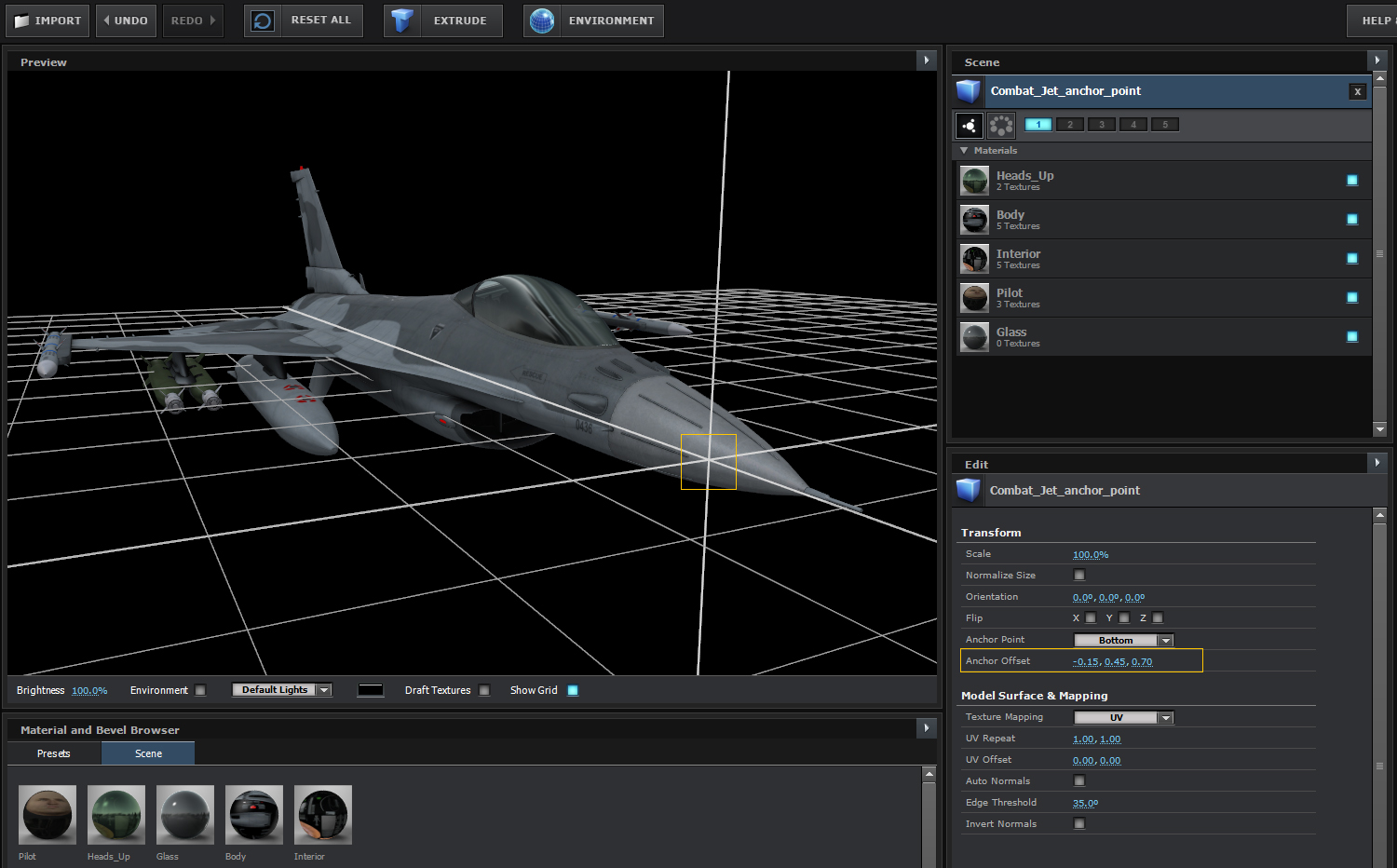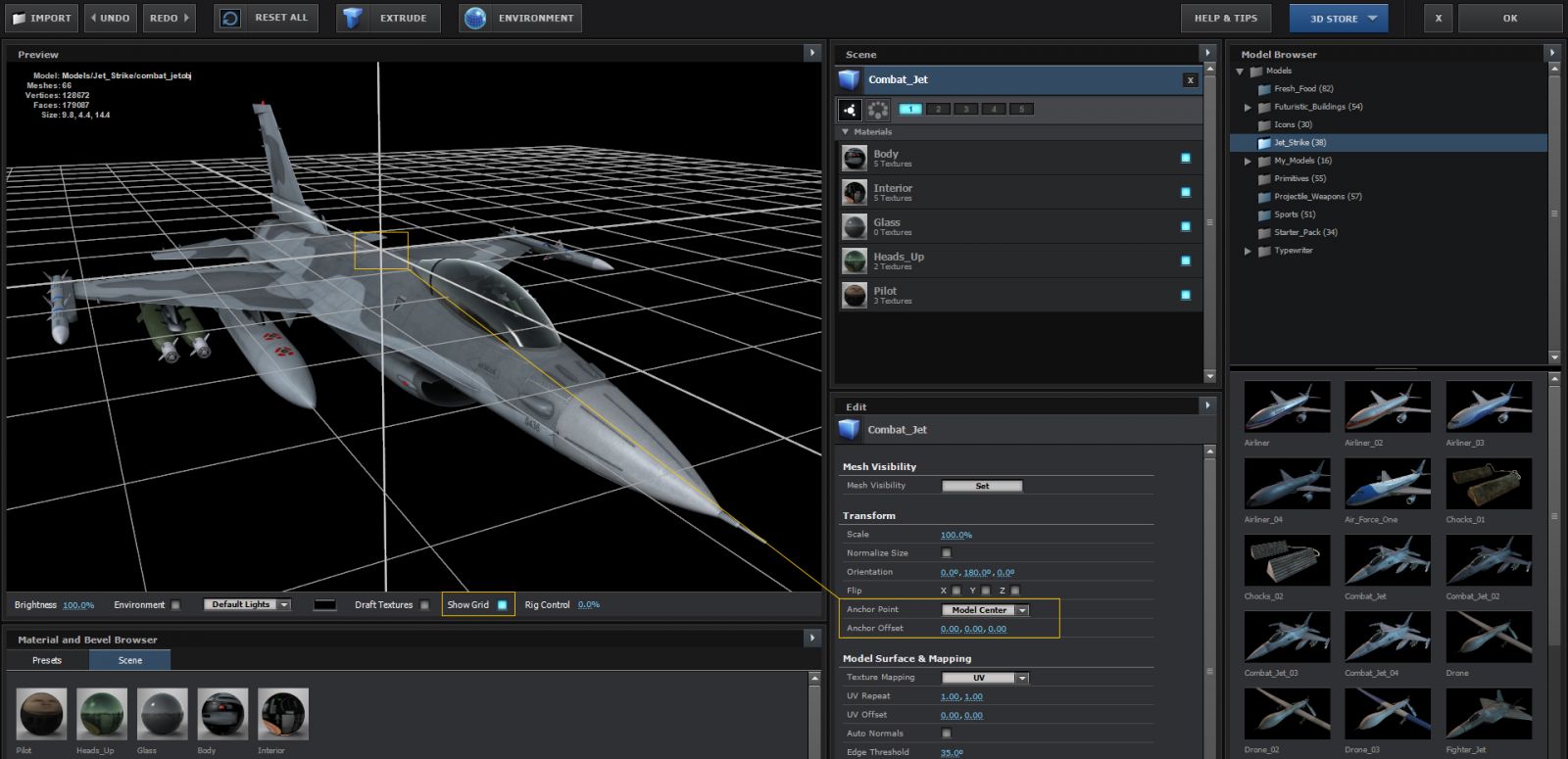 Anchor Point is the model's "handle" for being positioned, rotated, and scaled. All movements will revolve around the Anchor Point position. If the model has an anchor point that is far away from the model, when rotating the model it will swing very wide. If the anchor point is more centered to the object, it will rotate more centered around itself. Moving an anchor point can be helpful when needing to rotated helecopter rotors, car wheels, or anything that needs a central rotation.