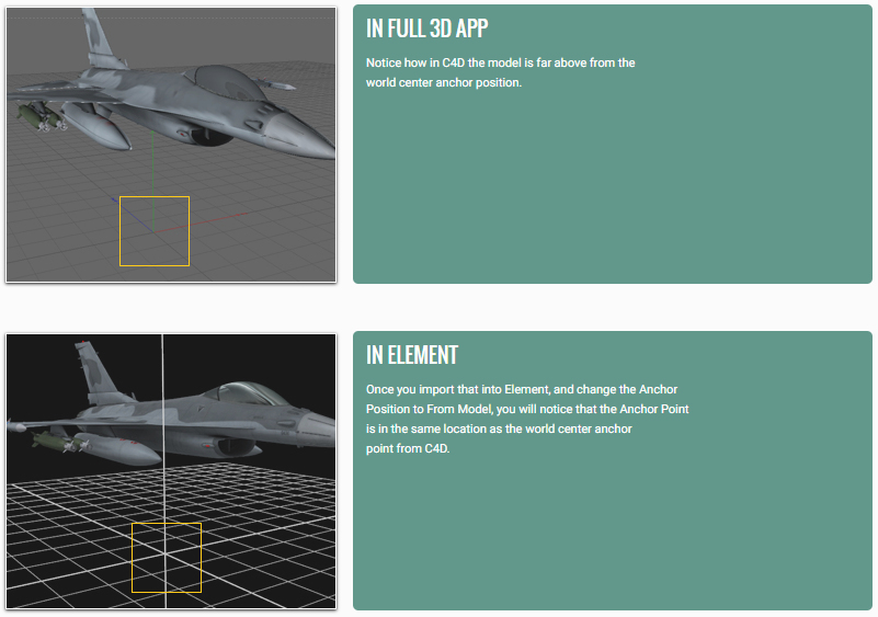 Anchor Points are exported from the 3d program that the originally came from. In a full 3d application, an object will have many anchor points as there are many pieces that can make up an object. But in Element the model comes in as one piece. So Element will use the World Anchor point from the the program it was exported from. So if the model was off center in the 3d program, once exported the anchor point will be off center in Element. If the object was at 0,0,0 center in the 3d program, the anchor point will come in centered in Element.