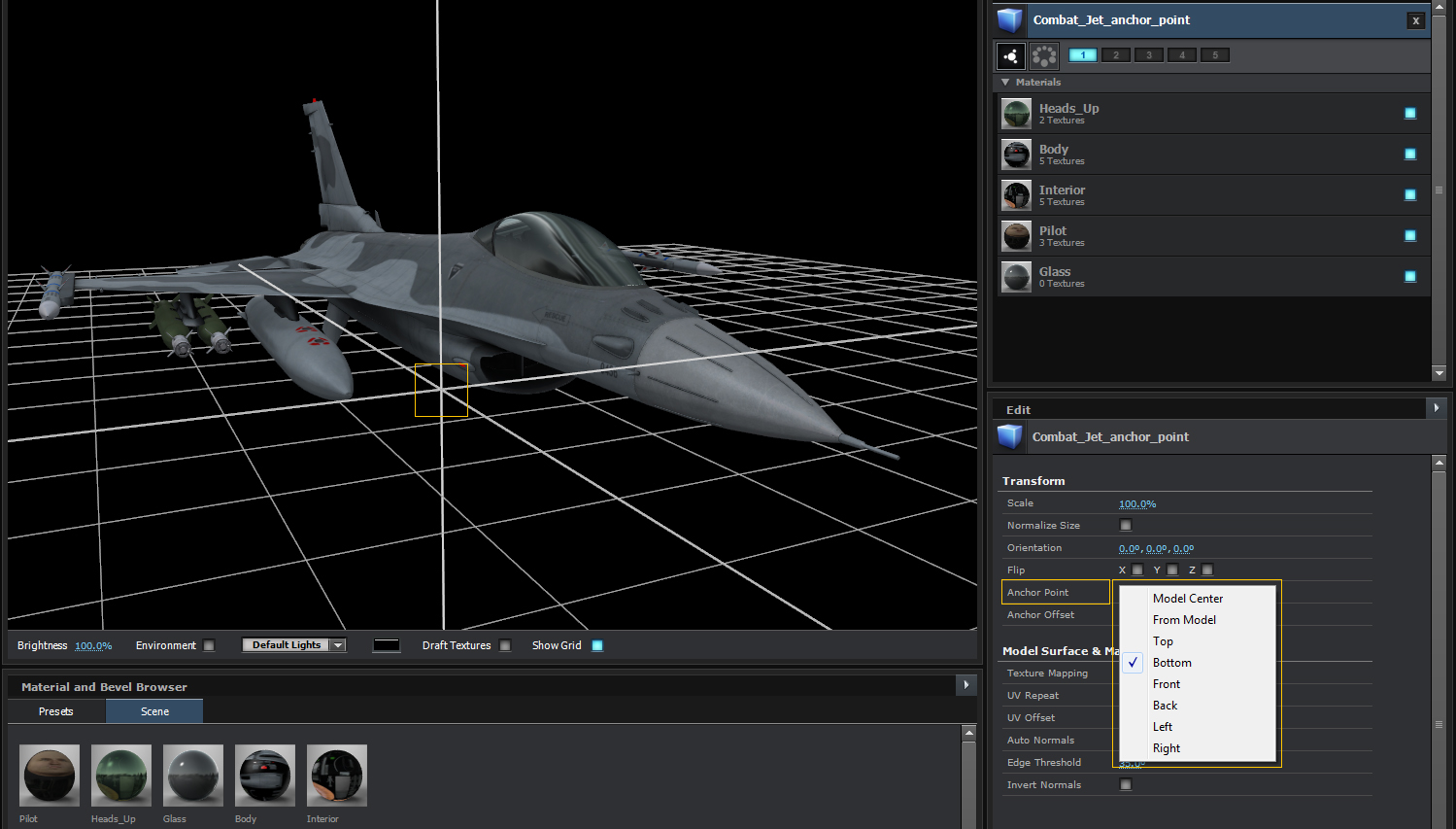 You can change the Anchor Point by using the Anchor Point drop down to select preset locations such as Model Center, From Model, Top Bottom, Front, Back, Left, Right.