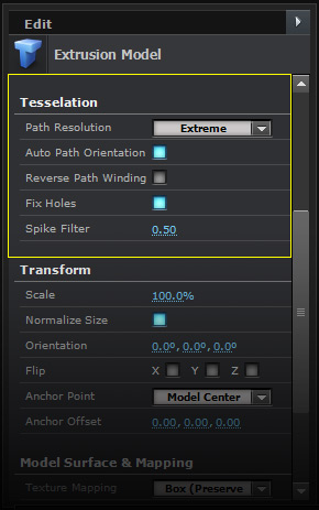 Set the Path Resolution to normal when working on your extrustions to speed up your workflow