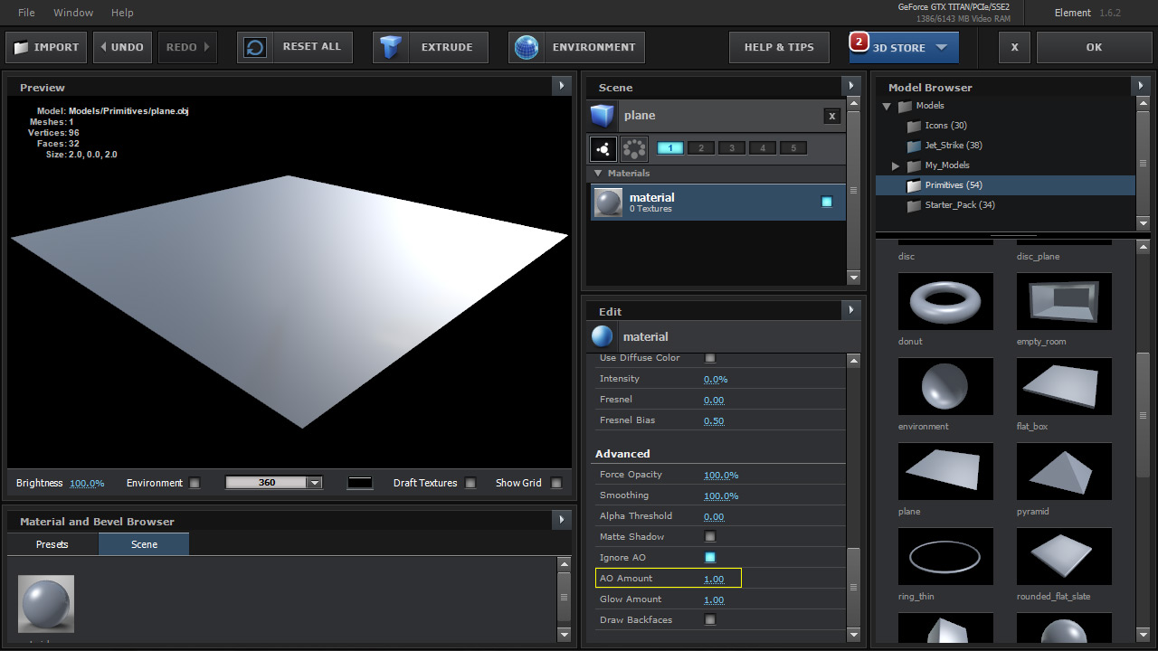 Control the amount of glow this material will use in relation to the main Glow settings in Element effects control panel render settings.
