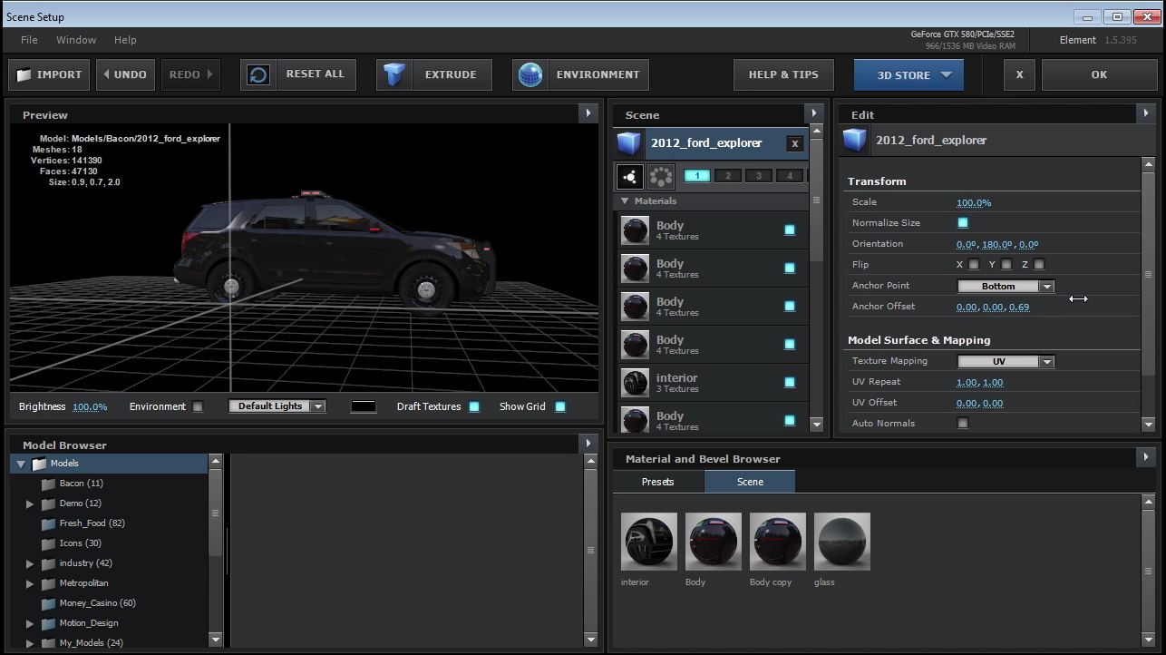 Fog Taper: Create a thinner fog radius for a scan-like look. (screen shot also has model set to wireframe)