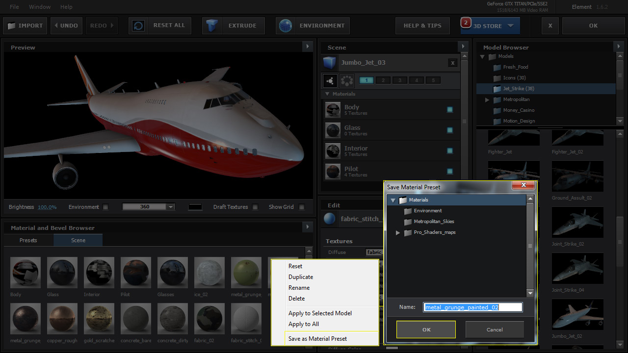 It is recommended that you save your material and model at *Documents/VideoCopilot/Models* or Materials.